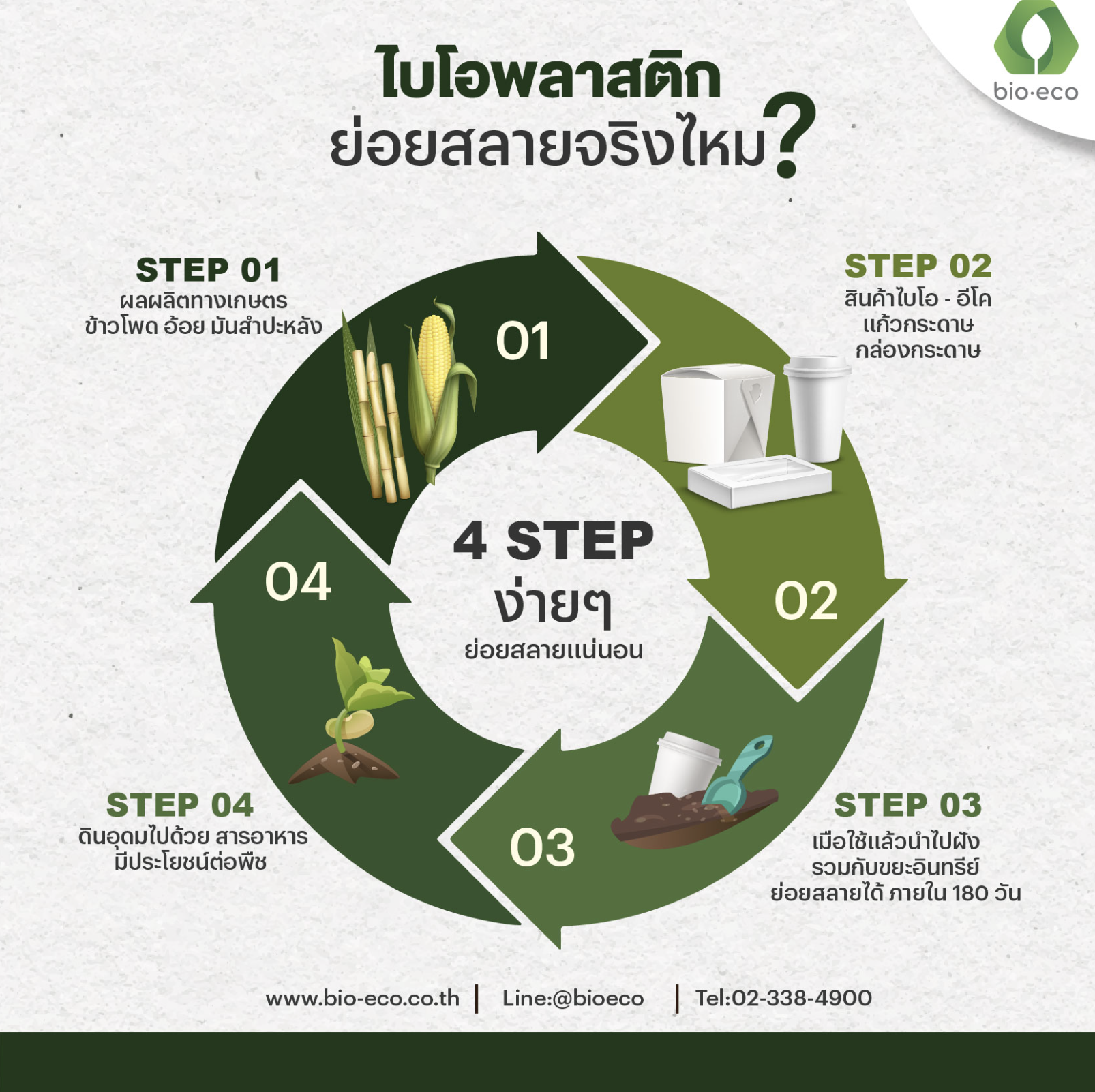บรรจุภัณฑ์ จากไบโอ-อีโค ผลิตจาก กระดาษ เคลือบด้วย Polybutylene succinate (PBS) แก้วใสผลิตจาก (Polylactic Acid) ซึ่งผลิตมาจากวัสดุธรรมชาติ ได้แก่ อ้อย ข้าวโพด มันสำปะหลัง